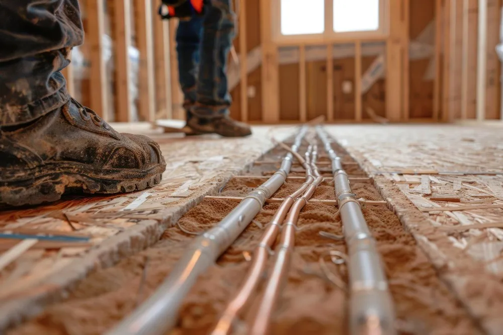 Planung der Fußbodenheizung, Verlegung der Heizrohre, Installation des Verteilersystems, Hydraulischer Abgleich, Integration in bestehendes Heizsystem, Druckprüfung und Inbetriebnahme